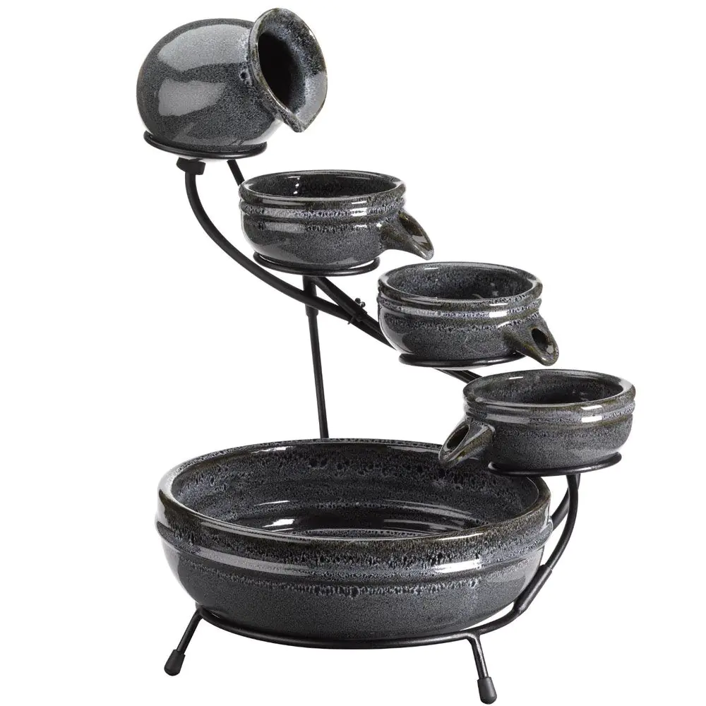 This stunning water feature has four tiers of subtle running water that flows through each cascading pot, creating a calm and tranquil sound.