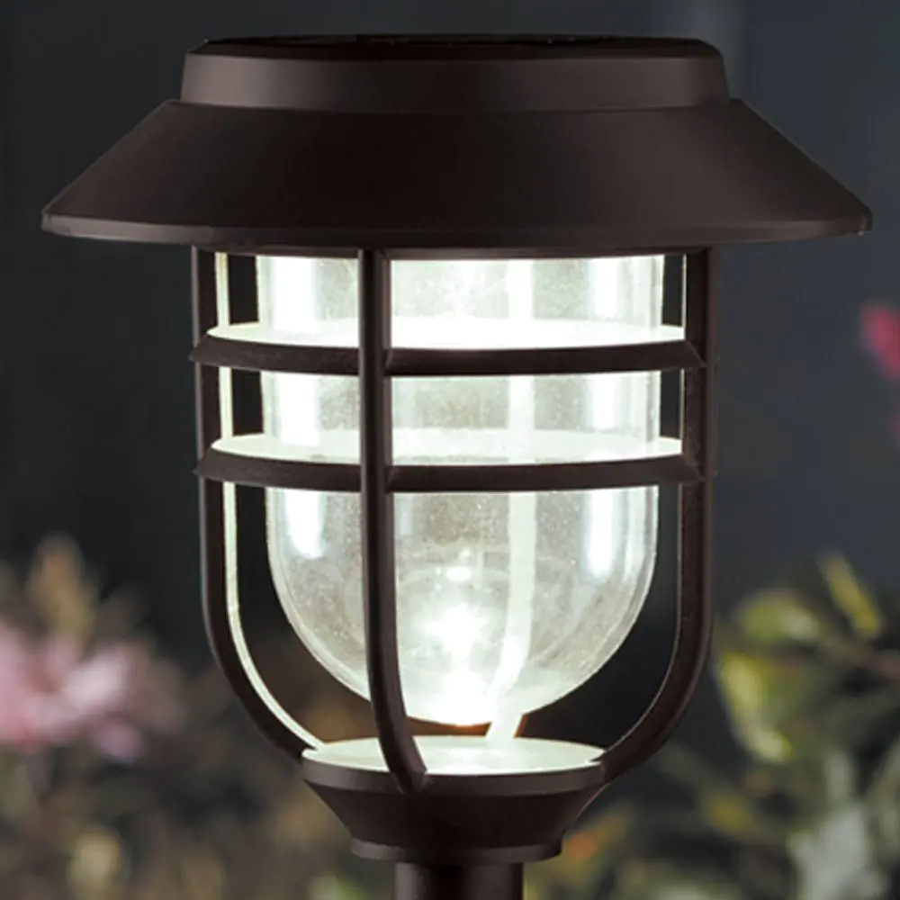 Simple Strong retro design with clear glass lenses, these classy lights have fitted solar panels, and will light up a small area, it is a sturdy looking solar garden light