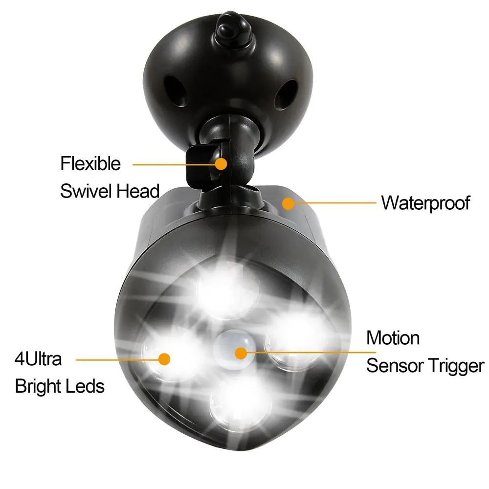 Buy Battery Operated Security Light 4 x 3W LED, Install a Super Bright 600 Lumens 8W, Motion Activated Outdoor light, Weatherproof, Free UK Delivery
