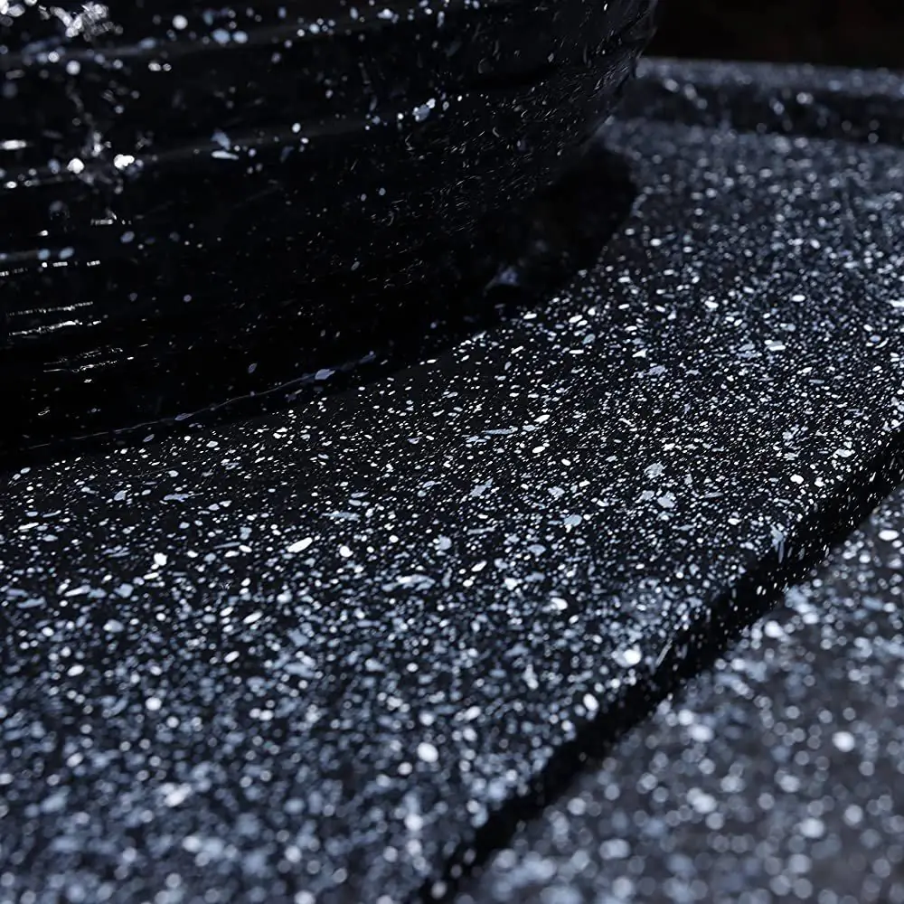 Made from realistic black granite effect, weather resistant resin, built to last. it is always best to protect any resin stone water feature when ice or snow are expected but the marble effect solar feature is weather resistant against all other UK weather including Frost.