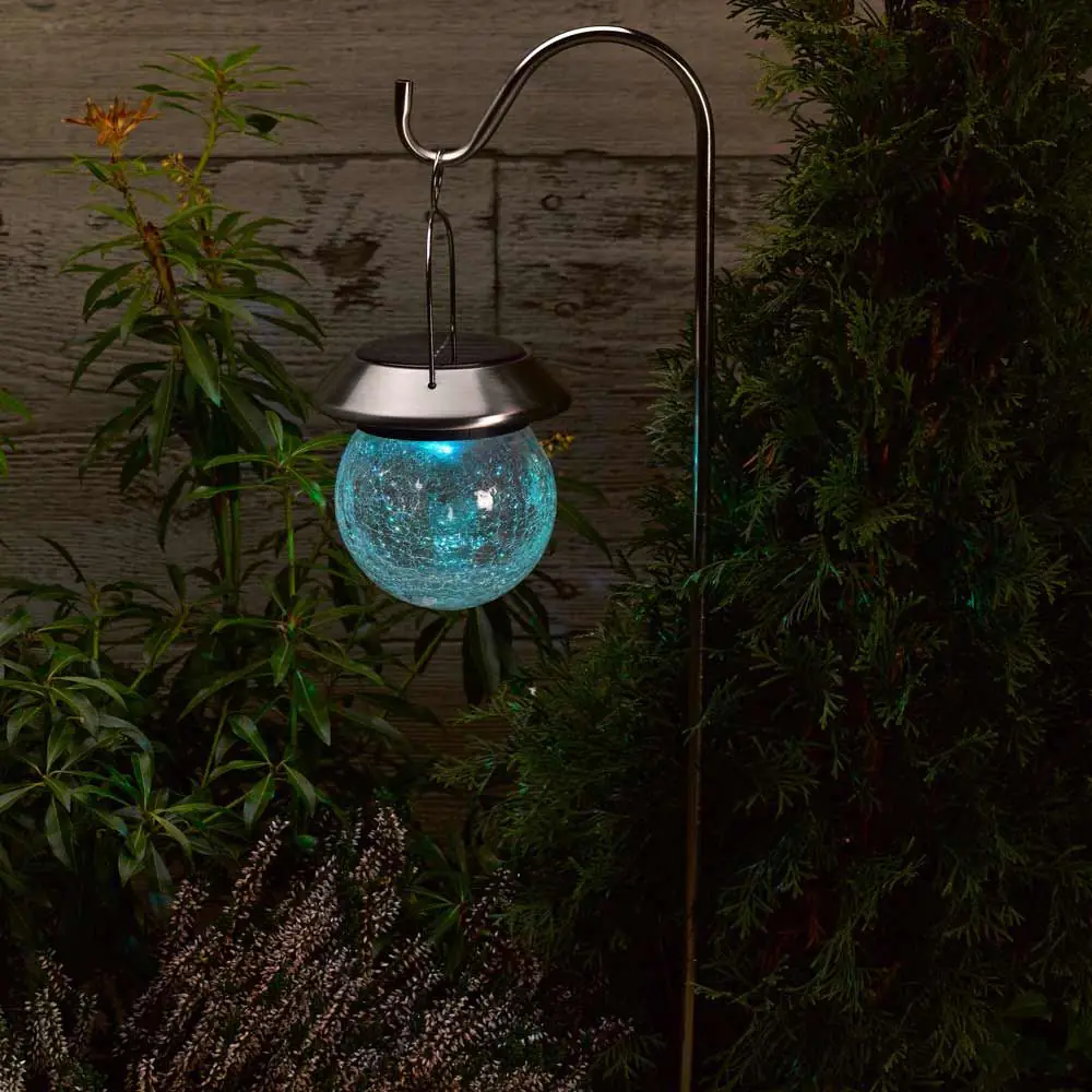 Shepherds Crook Crackle Globe Solar Lanterns in Stainless Steel