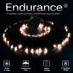 Amazing value for money, the white led’s automatically illuminate at dusk. Illuminating these novelty Berry lights. They continue to shine nearly all night most nights through out the summer time.