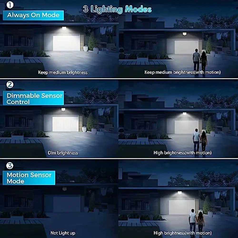 Mode 1: The light is 100% brightness when detected, and 30% brightness is always on 20 seconds after the person leaves;
