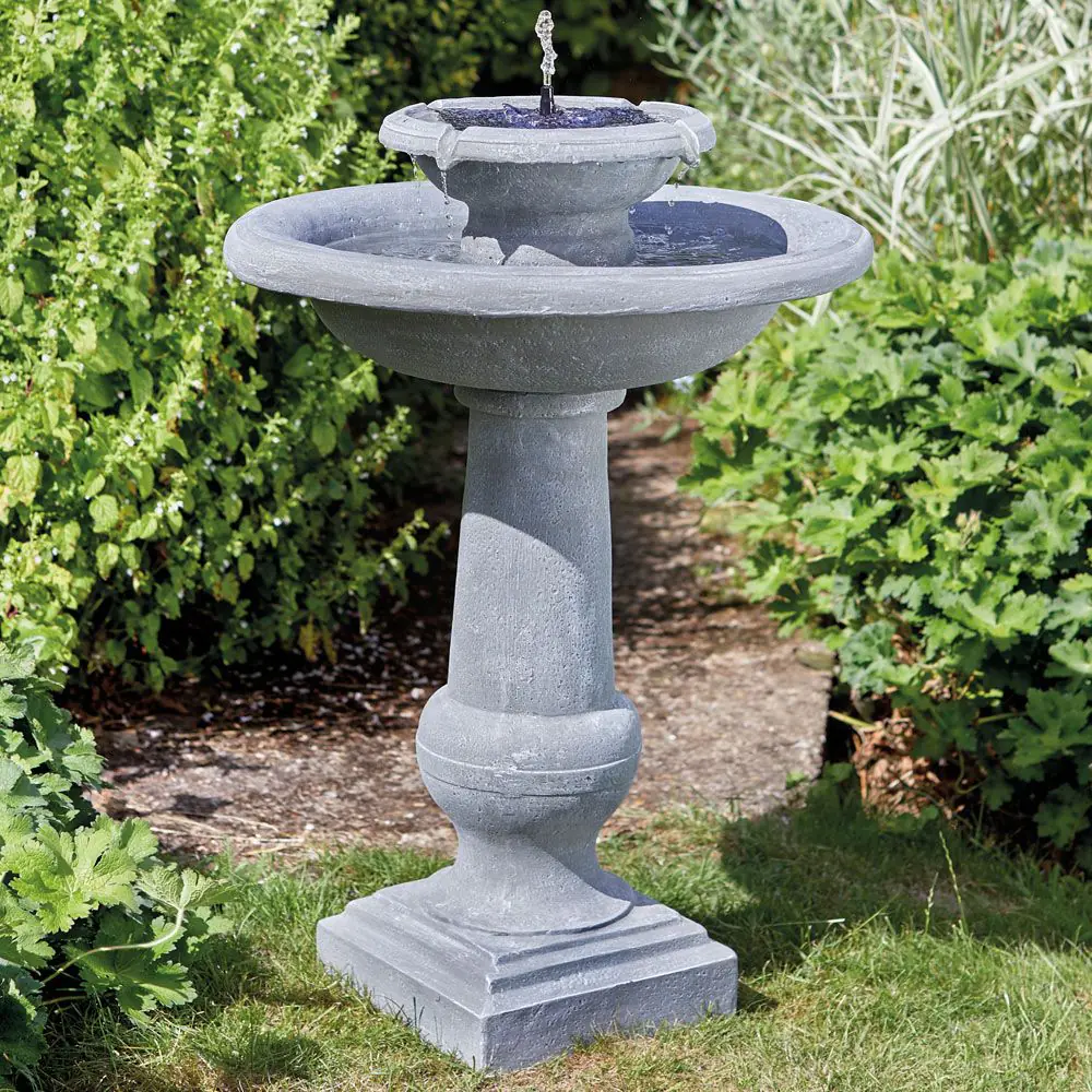 Buy a Chatsworth 2 Tier Fountain, Gorgeous Aged Stone Finish, Integrated Solar Panel Birdbath Fountain, Best Prices, Great reviews, Free UK Delivery