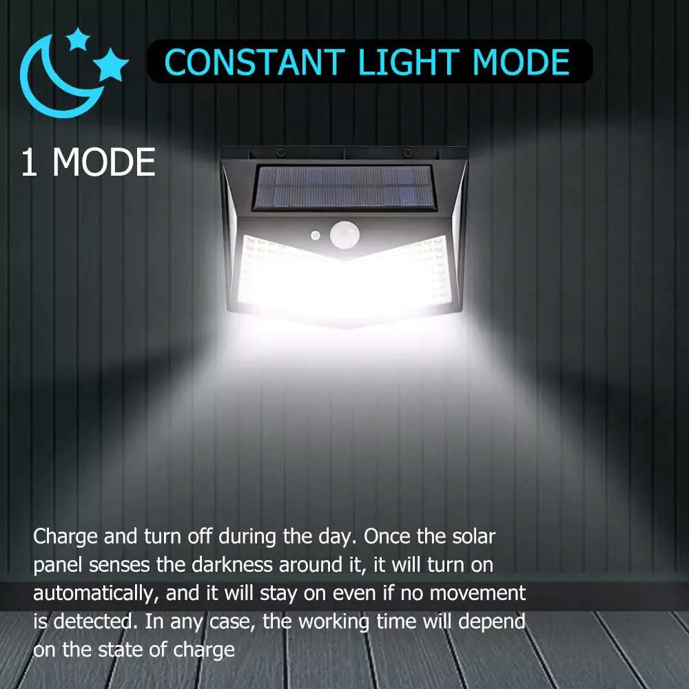 In this mode the PIR is deactivated, the light will turn itself on at dusk in dim mode and will continue until charge is depleted.