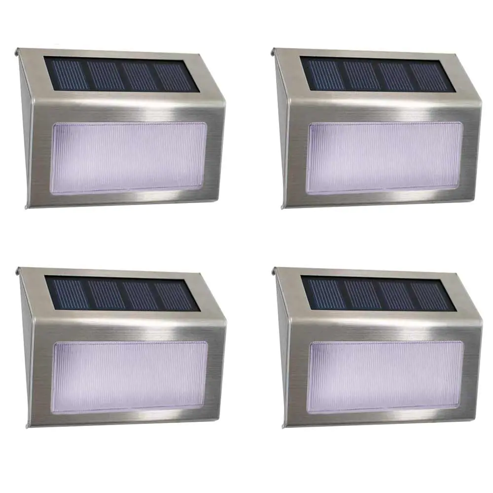 Buy Stainless Steel Solar Stair Lights – 4 pk, Make Outside Safer with Sleek Stair Lighting Powered By Solar, Best Prices, Great Reviews, FREE UK Delivery