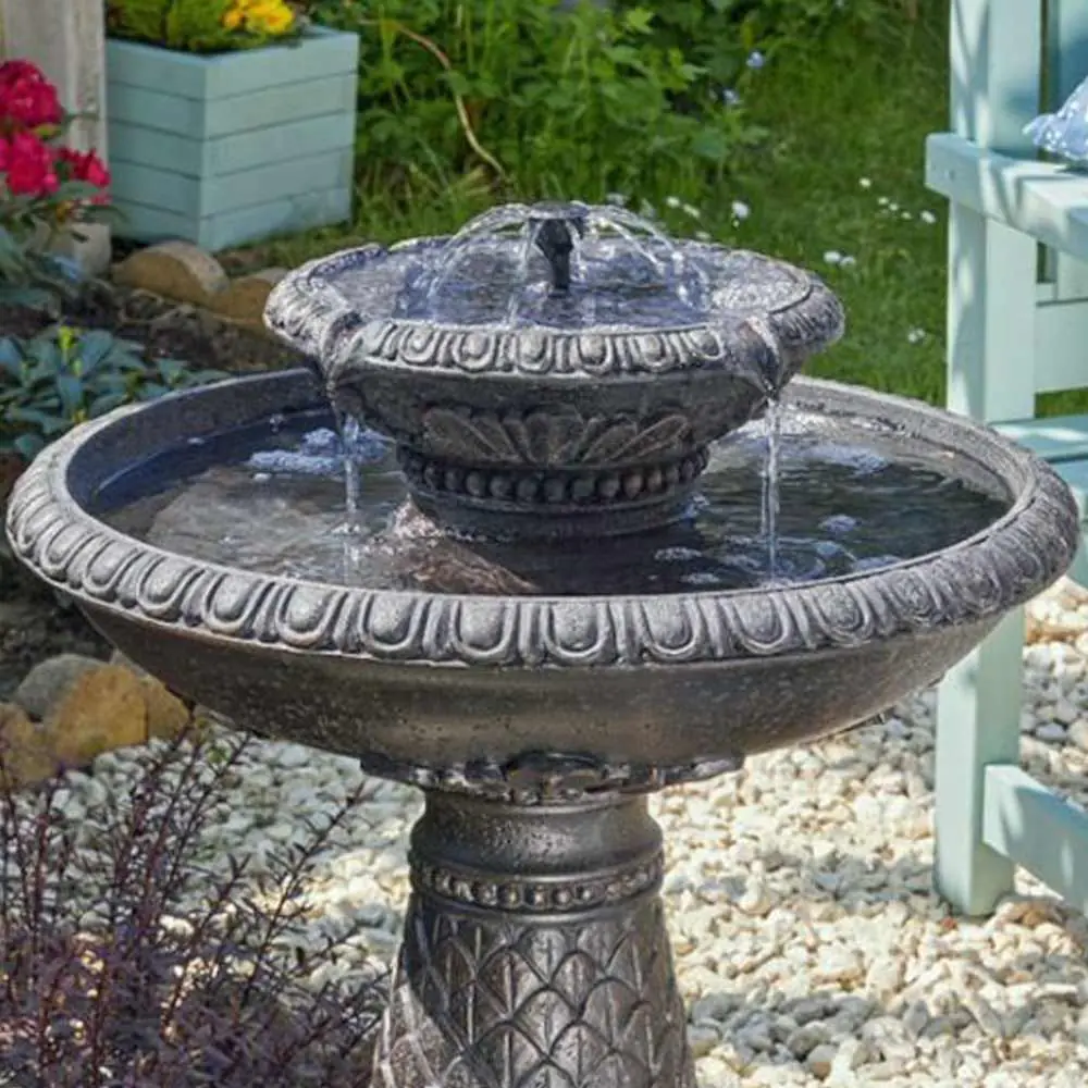 Buy a Versailles 2 Tier Solar Garden Water Fountain, Gorgeous Aged Bronze Finish, Solar Panel Birdbath Fountain, Best Prices, Great reviews, Free UK Delivery